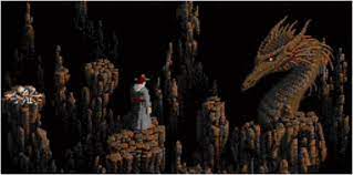 A pile of bones. Search it? You find an Elven sword of agility. Take it? The sword permanently endows you with Elven agility and quickness in combat. You notice something that looks wet and green under the pile. You could search further. Search? [the answer is “no”]